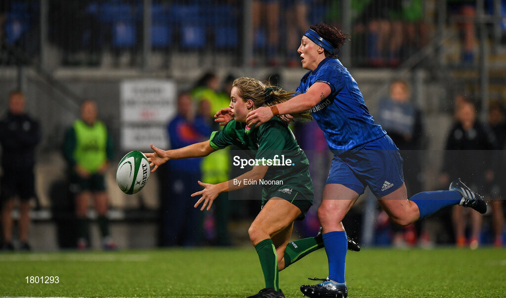 21 September 2019; Aoibheann Reilly of Connacht in action against Lindsay Peat of Leinster during the Women's Interprovincial Championship Final match between Leinster and Connacht at Energia Park in Donnybrook, Dublin. Photo by Eóin Noonan/Sportsfile