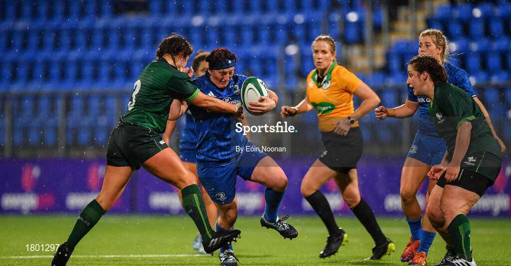 21 September 2019; Lindsay Peat of Leinster is tackled by Annmarie O’Hora of Connacht during the Women's Interprovincial Championship Final match between Leinster and Connacht at Energia Park in Donnybrook, Dublin. Photo by Eóin Noonan/Sportsfile