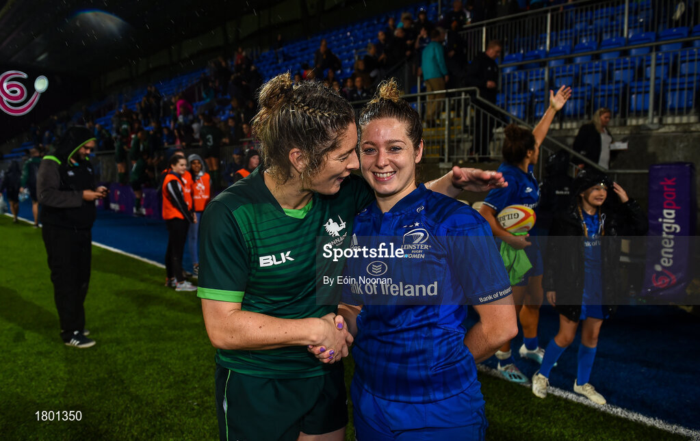 21 September 2019; Grace Miller of Leinster and Alison Miller of Connacht following the Women's Interprovincial Championship Final match between Leinster and Connacht at Energia Park in Donnybrook, Dublin. Photo by Eóin Noonan/Sportsfile