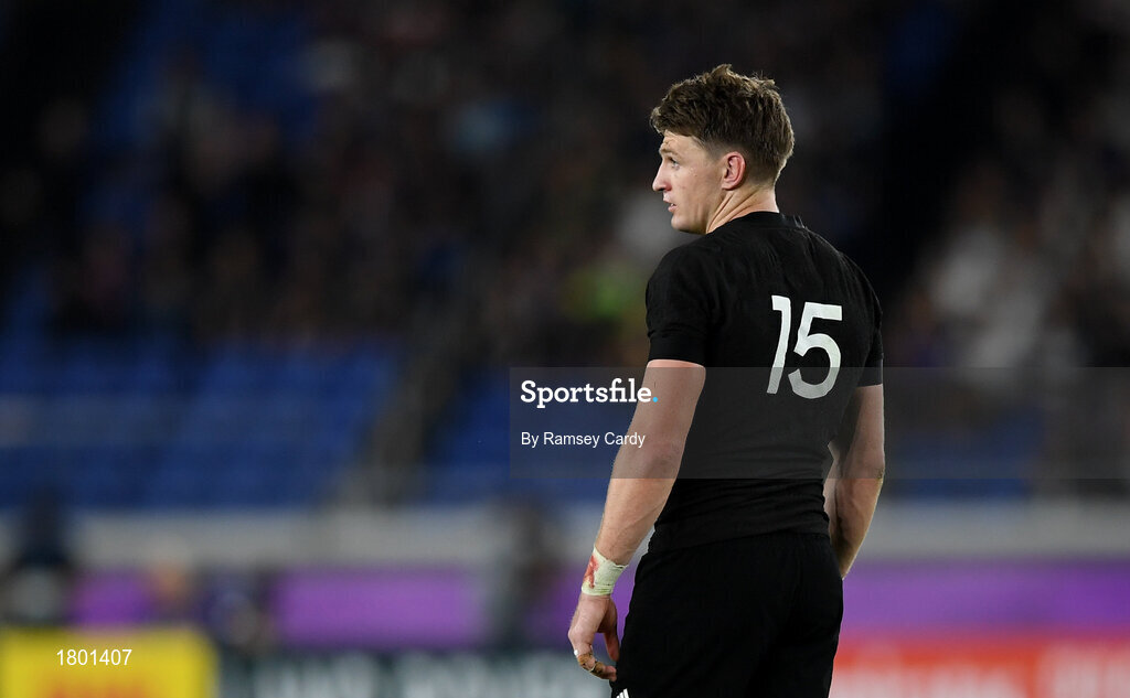 21 September 2019; Beauden Barrett of New Zealand during the 2019 Rugby World Cup Pool B match between New Zealand and South Africa at the International Stadium in Yokohama, Japan. Photo by Ramsey Cardy/Sportsfile