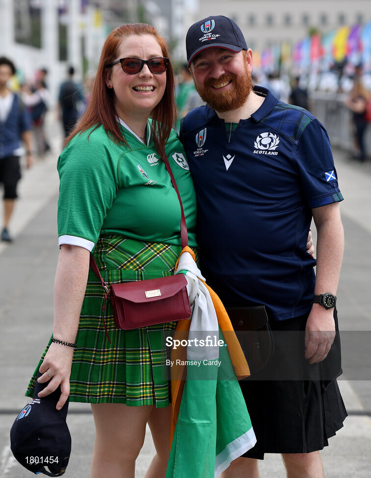 22 September 2019; Ireland supporter Julie McMahon and Scotland supporter Steve Reilly ahead of the 2019 Rugby World Cup Pool A match between Ireland and Scotland at the International Stadium in Yokohama, Japan. Photo by Ramsey Cardy/Sportsfile
