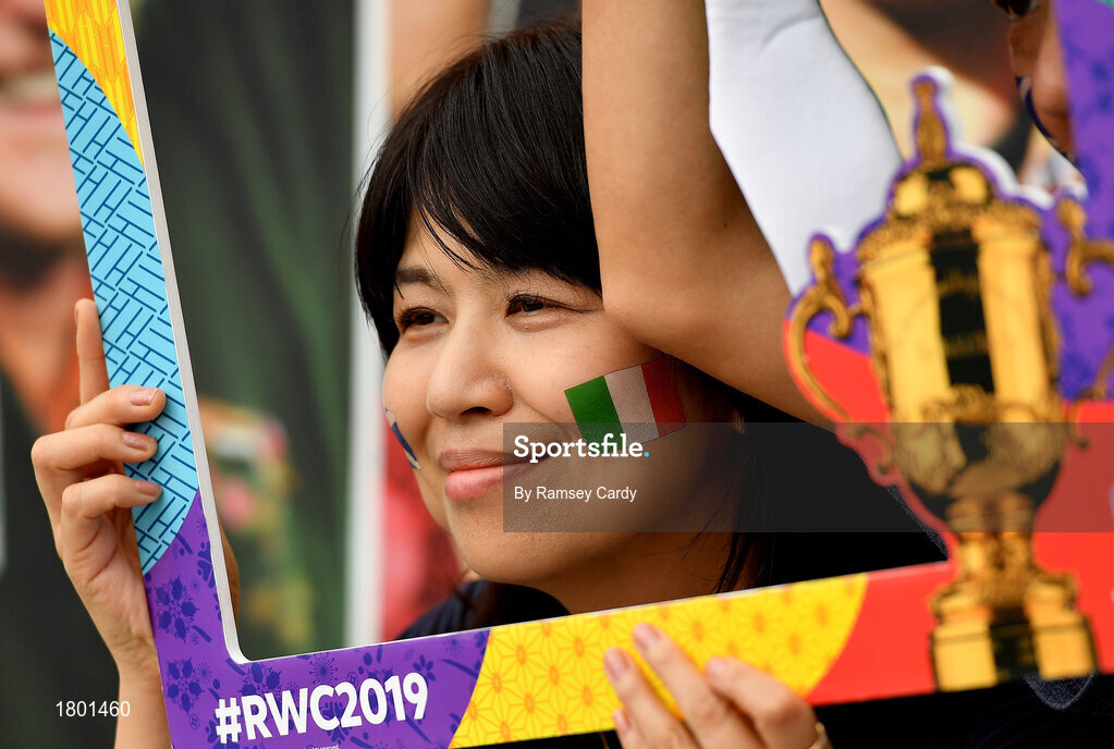 22 September 2019; A supporter ahead of the 2019 Rugby World Cup Pool A match between Ireland and Scotland at the International Stadium in Yokohama, Japan. Photo by Ramsey Cardy/Sportsfile