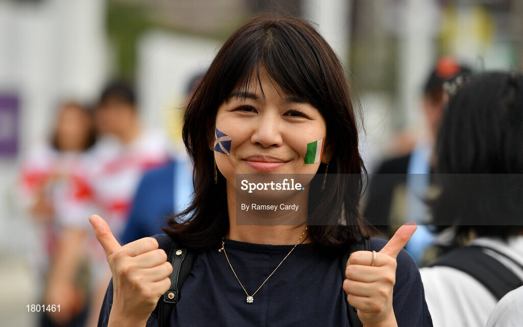 22 September 2019; A supporter ahead of the 2019 Rugby World Cup Pool A match between Ireland and Scotland at the International Stadium in Yokohama, Japan. Photo by Ramsey Cardy/Sportsfile