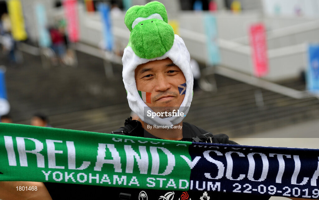 22 September 2019; A supporter ahead of the 2019 Rugby World Cup Pool A match between Ireland and Scotland at the International Stadium in Yokohama, Japan. Photo by Ramsey Cardy/Sportsfile