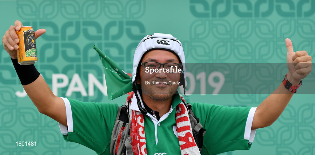 22 September 2019; An Ireland supporter ahead of the 2019 Rugby World Cup Pool A match between Ireland and Scotland at the International Stadium in Yokohama, Japan. Photo by Ramsey Cardy/Sportsfile
