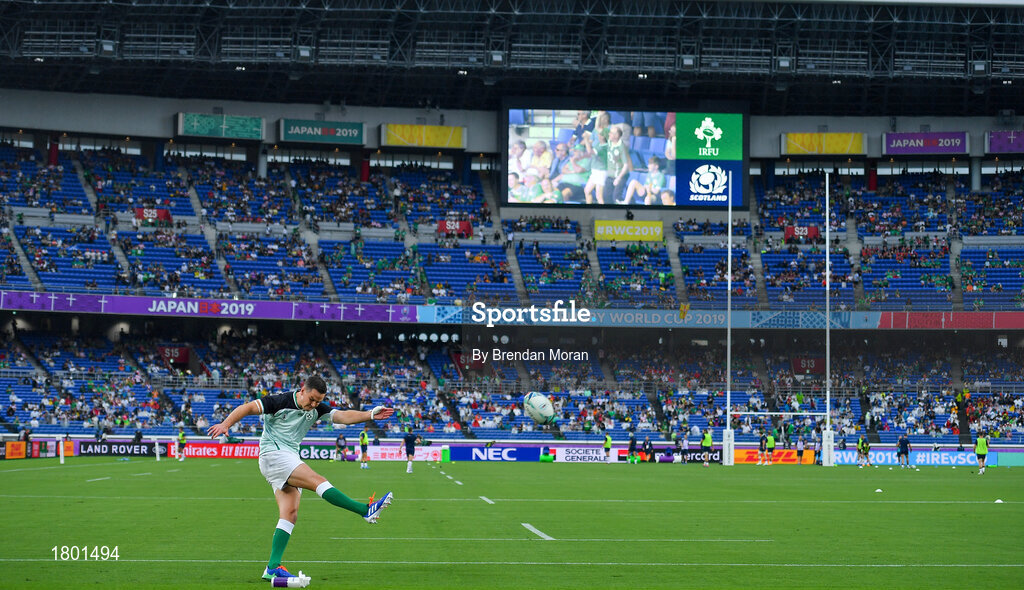 22 September 2019; Ireland's Jonathan Sexton during the pre-match warm up ahead of the 2019 Rugby World Cup Pool A match between Ireland and Scotland at the International Stadium in Yokohama, Japan. Photo by Brendan Moran/Sportsfile