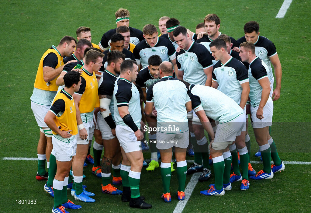 22 September 2019; Ireland captain Rory Best speaks to his team ahead of the 2019 Rugby World Cup Pool A match between Ireland and Scotland at the International Stadium in Yokohama, Japan. Photo by Ramsey Cardy/Sportsfile