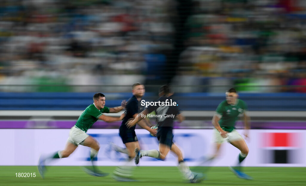 22 September 2019; Luke McGrath of Ireland during the 2019 Rugby World Cup Pool A match between Ireland and Scotland at the International Stadium in Yokohama, Japan. Photo by Ramsey Cardy/Sportsfile