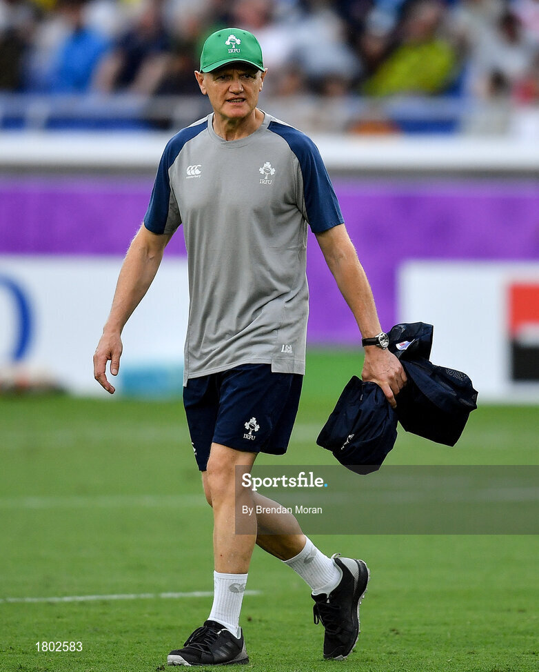 22 September 2019; Ireland head coach Joe Schmidt during the 2019 Rugby World Cup Pool A match between Ireland and Scotland at the International Stadium in Yokohama, Japan. Photo by Brendan Moran/Sportsfile