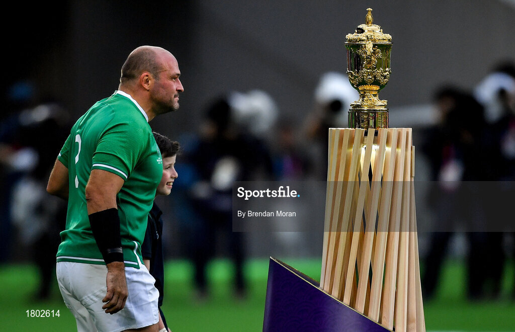 22 September 2019; Ireland captain Rory Best walks past the William Webb Ellis Cup prior to the 2019 Rugby World Cup Pool A match between Ireland and Scotland at the International Stadium in Yokohama, Japan. Photo by Brendan Moran/Sportsfile