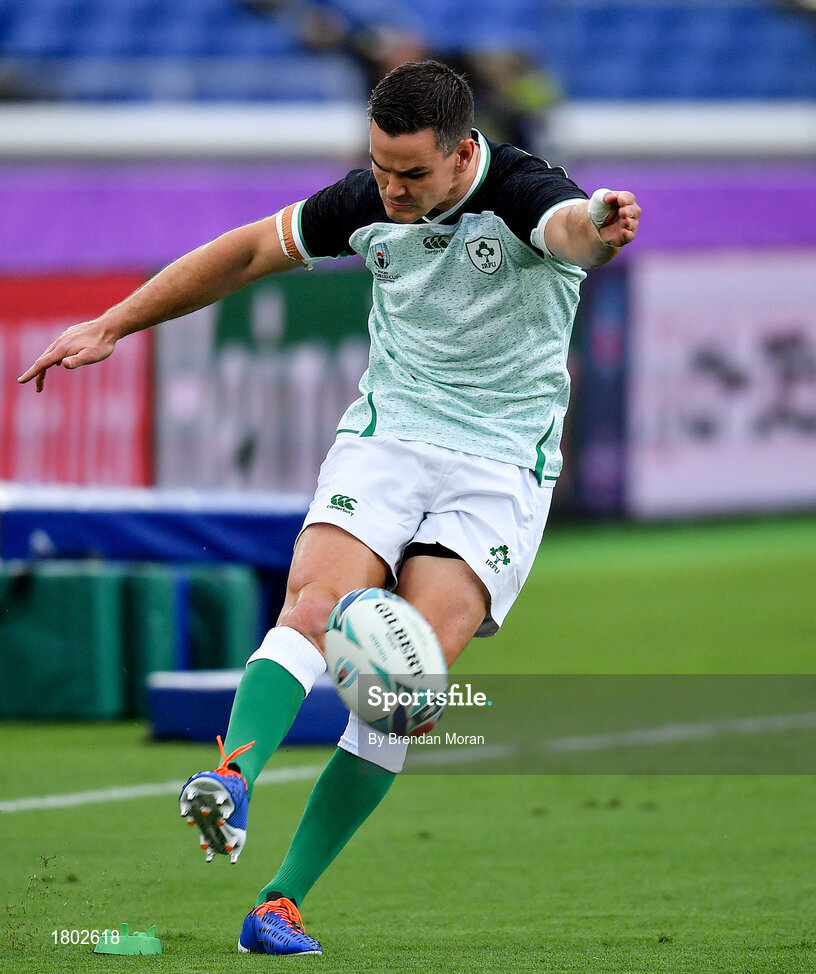 22 September 2019; Jonathan Sexton of Ireland during the warm-up prior to the 2019 Rugby World Cup Pool A match between Ireland and Scotland at the International Stadium in Yokohama, Japan. Photo by Brendan Moran/Sportsfile