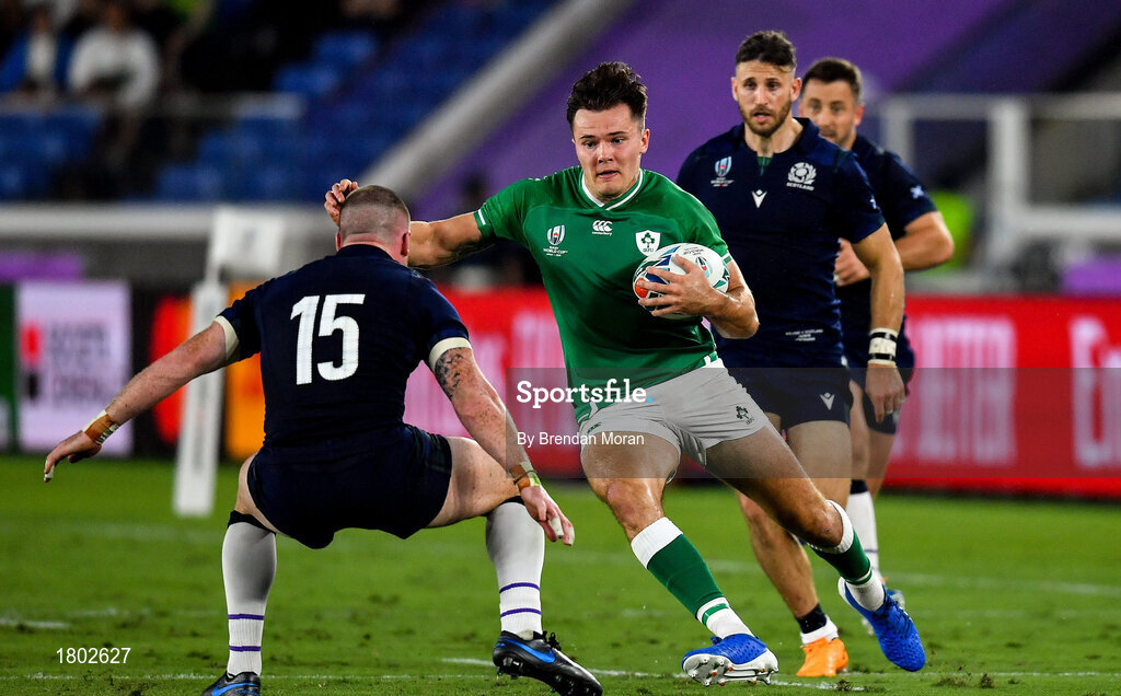 22 September 2019; Jacob Stockdale of Ireland during the 2019 Rugby World Cup Pool A match between Ireland and Scotland at the International Stadium in Yokohama, Japan. Photo by Brendan Moran/Sportsfile