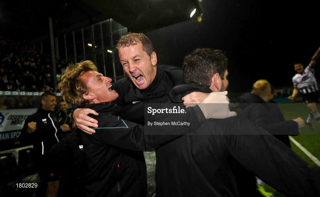 23 September 2019; Dundalk head coach Vinny Perth celebrates winning the SSE Airtricity League Premier Division following their match against Shamrock Rovers at Oriel Park in Dundalk, Co Louth. Photo by Stephen McCarthy/Sportsfile