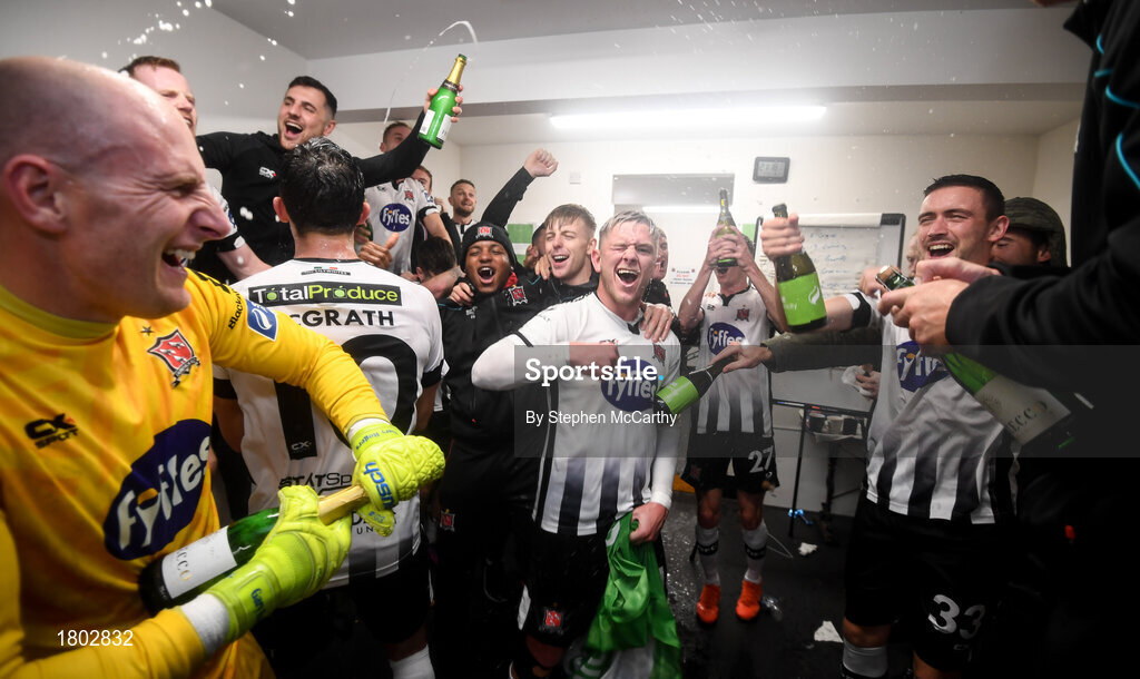 23 September 2019; Dundalk players celebrate winning the SSE Airtricity League Premier Division following their match against Shamrock Rovers at Oriel Park in Dundalk, Co Louth. Photo by Stephen McCarthy/Sportsfile