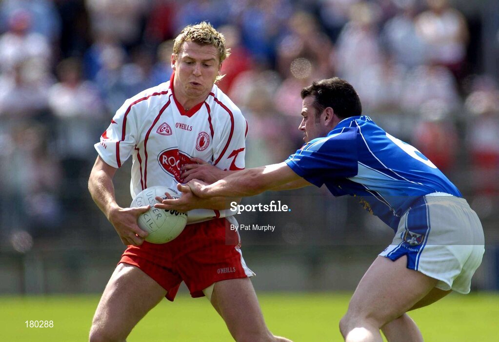 19 June 2005; Owen Mulligan, Tyrone, in action against Peter Reilly, Cavan. Bank of Ireland Ulster Senior Football Championship Semi-Final, Tyrone v Cavan, St. Tighernach's Park, Clones, Co. Monaghan. Picture credit; Pat Murphy / SPORTSFILE