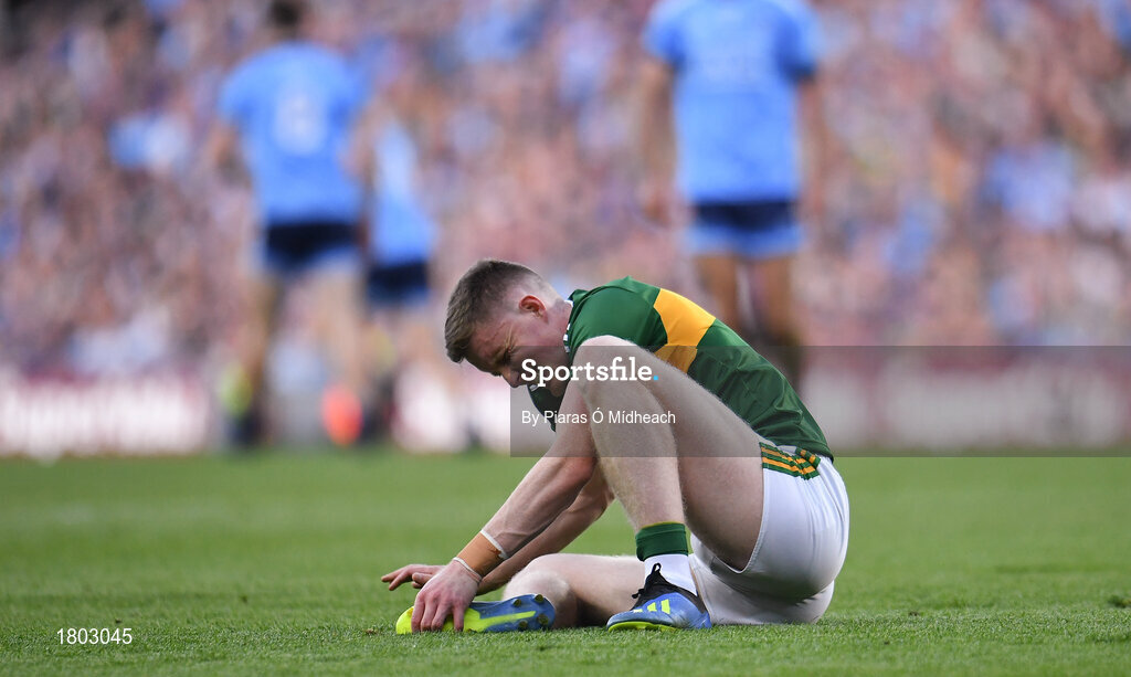 14 September 2019; Jason Foley of Kerry reacts after picking up an injury during the GAA Football All-Ireland Senior Championship Final Replay between Dublin and Kerry at Croke Park in Dublin. Photo by Piaras Ó Mídheach/Sportsfile