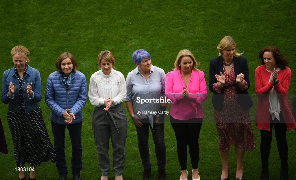 15 September 2019; The 1994 Waterford jubilee team ahead of the TG4 All-Ireland Ladies Football Senior Championship Final match between Dublin and Galway at Croke Park in Dublin. Photo by Ramsey Cardy/Sportsfile