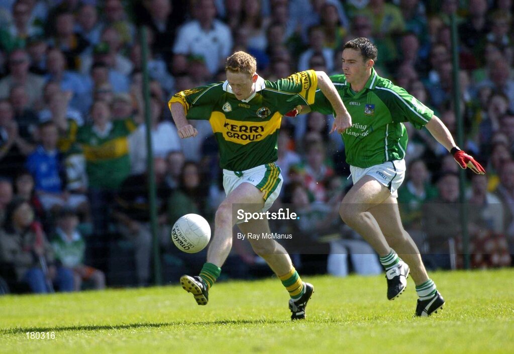 19 June 2005; Colm Cooper, Kerry, in action against Mark O'Riordan, Limerick. Bank of Ireland Munster Senior Football Championship Semi-Final, Limerick v Kerry, Gaelic Grounds, Limerick. Picture credit; Ray McManus / SPORTSFILE