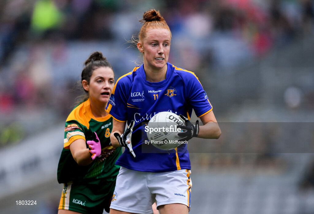 15 September 2019; Aishling Moloney of Tipperary in action against Máire O'Shaughnessy of Meath during the TG4 All-Ireland Ladies Football Intermediate Championship Final match between Meath and Tipperary at Croke Park in Dublin. Photo by Piaras Ó Mídheach/Sportsfile