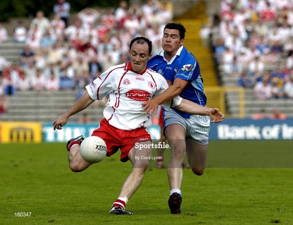 19 June 2005; Brian Dooher, Tyrone, in action against Mark McKeever, Cavan. Bank of Ireland Ulster Senior Football Championship Semi-Final, Tyrone v Cavan, St. Tighernach's Park, Clones, Co. Monaghan. Picture credit; Ciara Lyster / SPORTSFILE