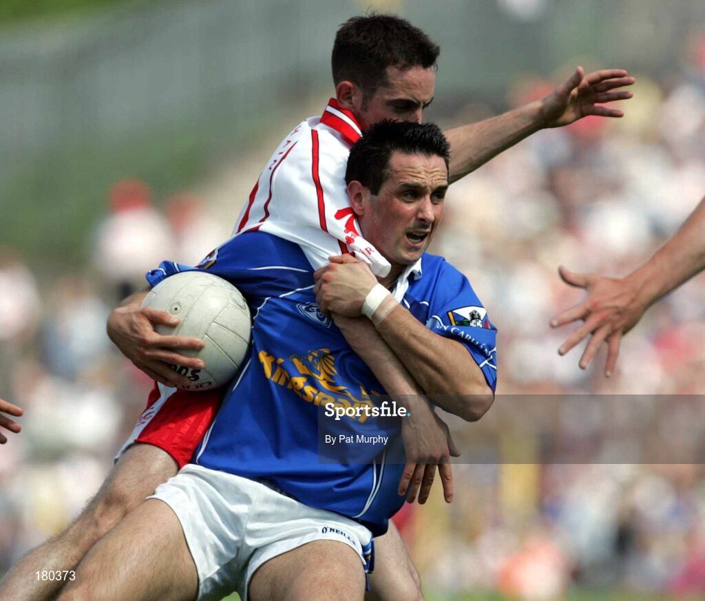 19 June 2005; Paul Brady, Cavan, in action against Brendan Donnelly, Tyrone. Bank of Ireland Ulster Senior Football Championship Semi-Final, Tyrone v Cavan, St. Tighernach's Park, Clones, Co. Monaghan. Picture credit; Oliver McVeigh / SPORTSFILE
