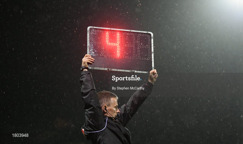 23 September 2019; Fourth official Derek Tomney during the SSE Airtricity League Premier Division match between Dundalk and Shamrock Rovers at Oriel Park in Dundalk, Co Louth. Photo by Stephen McCarthy/Sportsfile