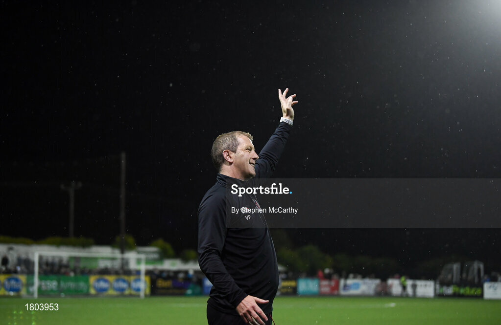 23 September 2019; Dundalk head coach Vinny Perth during the SSE Airtricity League Premier Division match between Dundalk and Shamrock Rovers at Oriel Park in Dundalk, Co Louth. Photo by Stephen McCarthy/Sportsfile