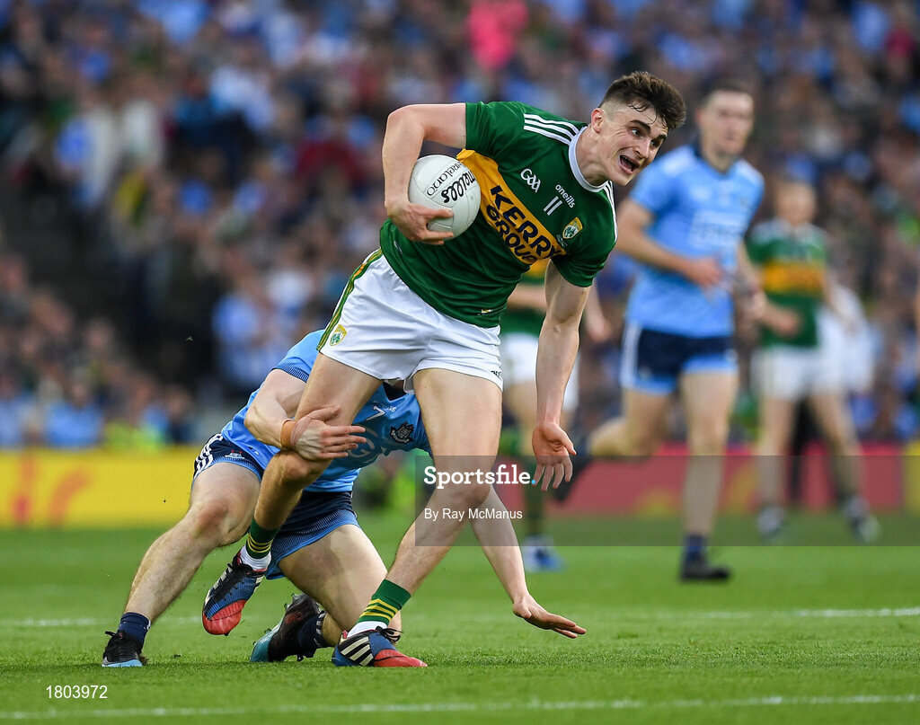 14 September 2019; Seán O'Shea of Kerry is tackled by John Small of Dublin during the GAA Football All-Ireland Senior Championship Final Replay match between Dublin and Kerry at Croke Park in Dublin. Photo by Ray McManus/Sportsfile