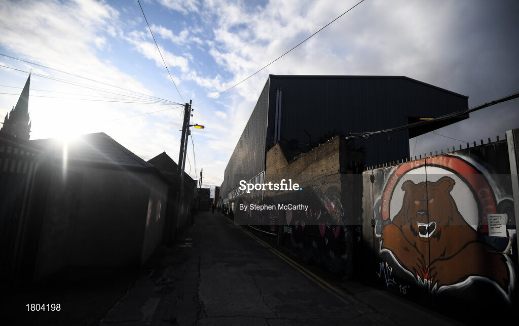 27 September 2019; A mural is seen on a gate outside Dalymount Park prior to the Extra.ie FAI Cup Semi-Final match between Bohemians and Shamrock Rovers at Dalymount Park in Dublin. Photo by Stephen McCarthy/Sportsfile