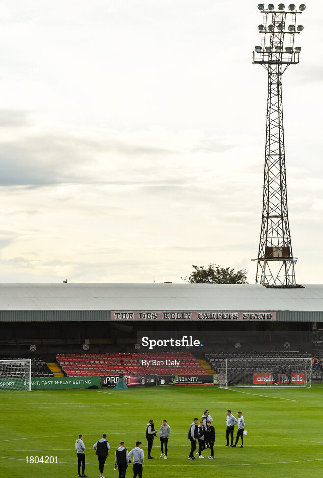 27 September 2019; Shamrock Rovers players walk the pitch prior to the Extra.ie FAI Cup Semi-Final match between Bohemians and Shamrock Rovers at Dalymount Park in Dublin. Photo by Seb Daly/Sportsfile