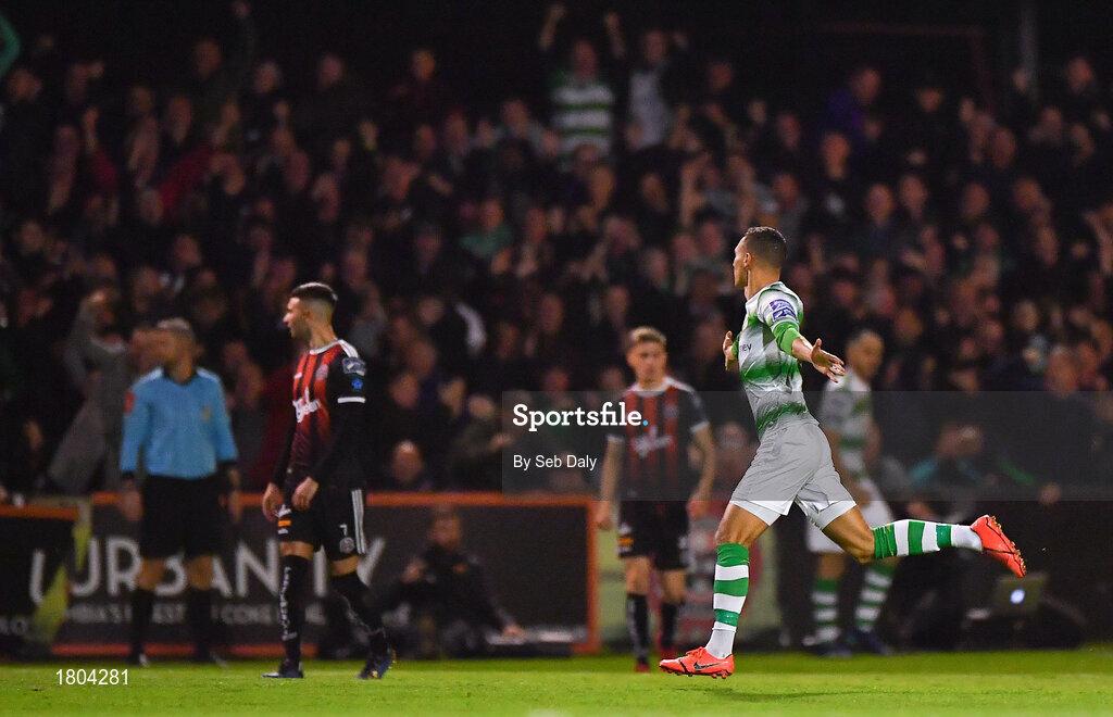 27 September 2019; Graham Burke of Shamrock Rovers celebrates after scoring his side's first goal during the Extra.ie FAI Cup Semi-Final match between Bohemians and Shamrock Rovers at Dalymount Park in Dublin. Photo by Seb Daly/Sportsfile