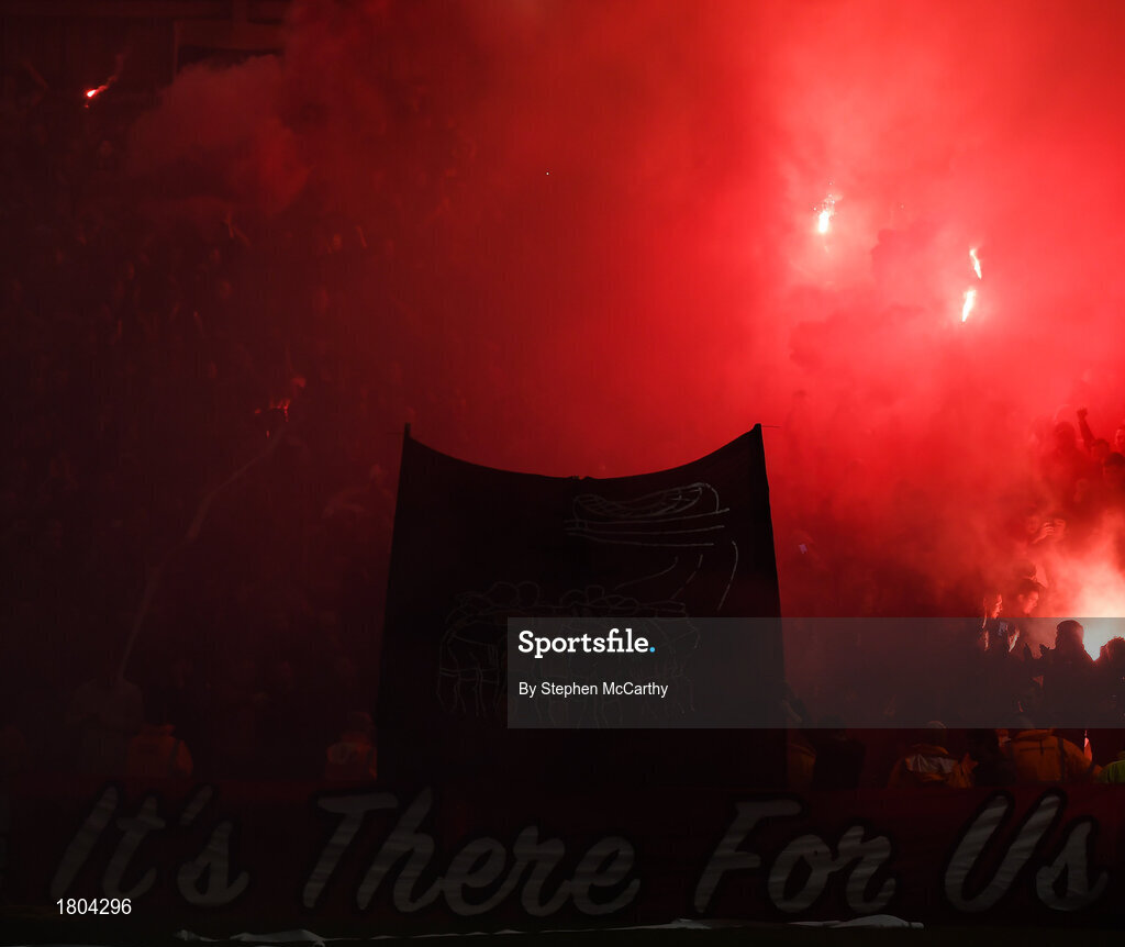 27 September 2019; Bohemians supporters during the Extra.ie FAI Cup Semi-Final match between Bohemians and Shamrock Rovers at Dalymount Park in Dublin. Photo by Stephen McCarthy/Sportsfile