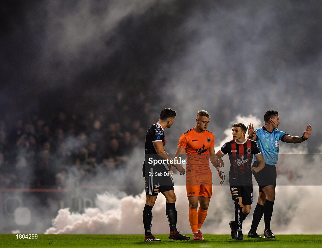 27 September 2019; Bohemians players, from left, Rob Cornwall, James Talbot and Keith Buckley in conversation after their side conceded a goal during the Extra.ie FAI Cup Semi-Final match between Bohemians and Shamrock Rovers at Dalymount Park in Dublin. Photo by Seb Daly/Sportsfile
