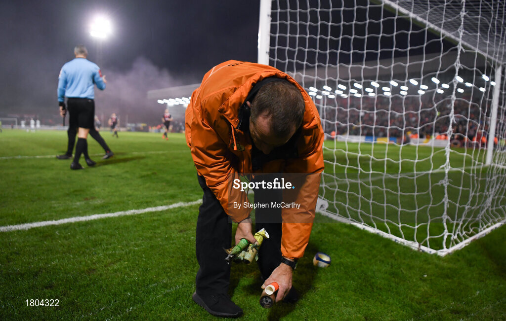 27 September 2019; Objects are taken from the pitch prior to kick off of the Extra.ie FAI Cup Semi-Final match between Bohemians and Shamrock Rovers at Dalymount Park in Dublin. Photo by Stephen McCarthy/Sportsfile