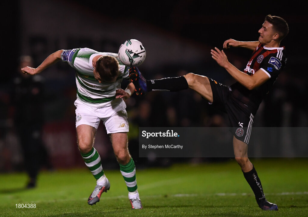 27 September 2019; Ronan Finn of Shamrock Rovers in action against Keith Buckley of Bohemians during the Extra.ie FAI Cup Semi-Final match between Bohemians and Shamrock Rovers at Dalymount Park in Dublin. Photo by Stephen McCarthy/Sportsfile