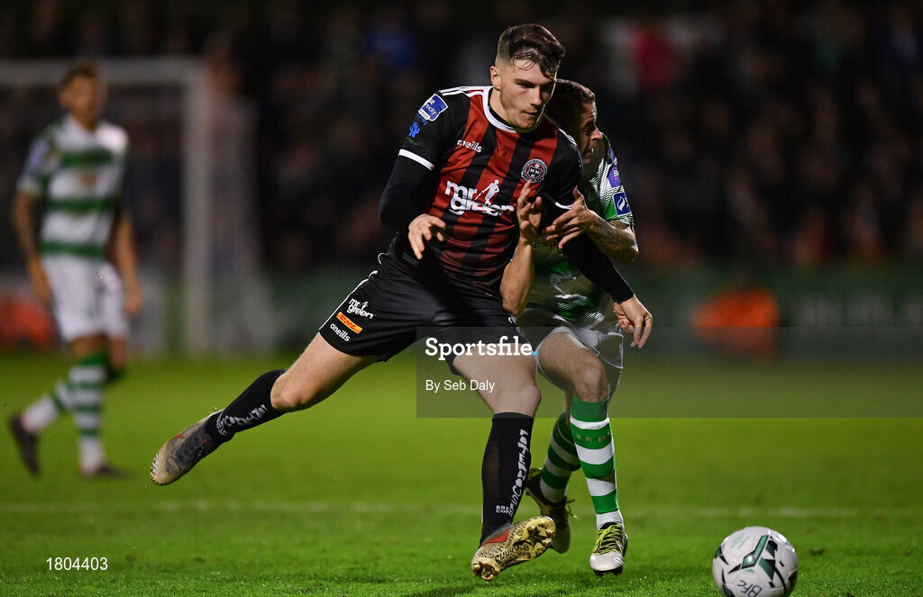 27 September 2019; Ryan Graydon of Bohemians in action against Sean Kavanagh of Shamrock Rovers during the Extra.ie FAI Cup Semi-Final match between Bohemians and Shamrock Rovers at Dalymount Park in Dublin. Photo by Seb Daly/Sportsfile