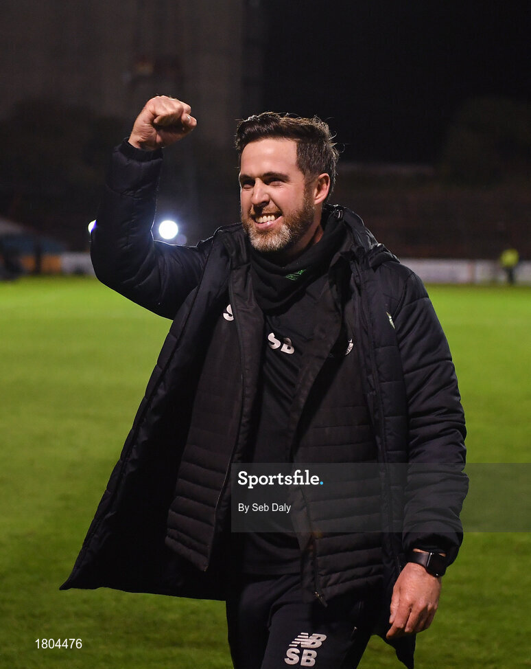 27 September 2019; Shamrock Rovers manager Stephen Bradley celebrates following his side's victory during the Extra.ie FAI Cup Semi-Final match between Bohemians and Shamrock Rovers at Dalymount Park in Dublin. Photo by Seb Daly/Sportsfile