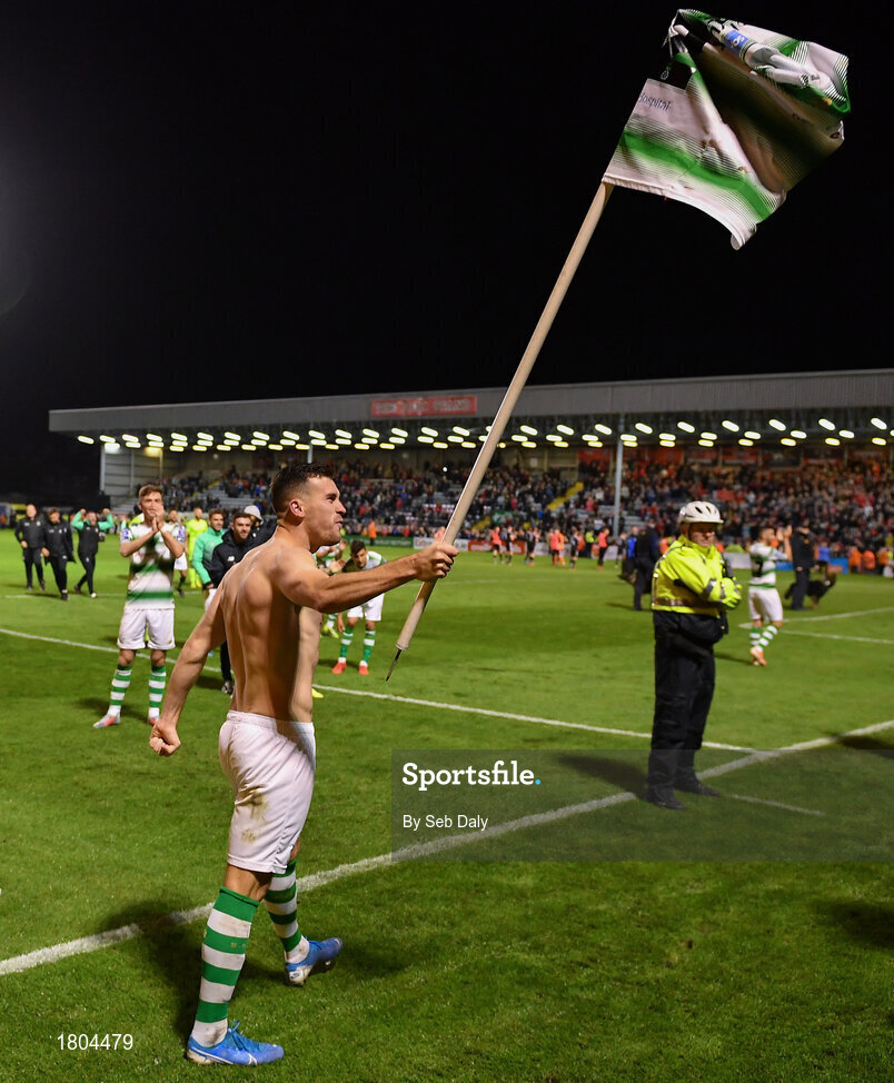 27 September 2019; Aaron Greene of Shamrock Rovers celebrates following his side's victory during the Extra.ie FAI Cup Semi-Final match between Bohemians and Shamrock Rovers at Dalymount Park in Dublin. Photo by Seb Daly/Sportsfile