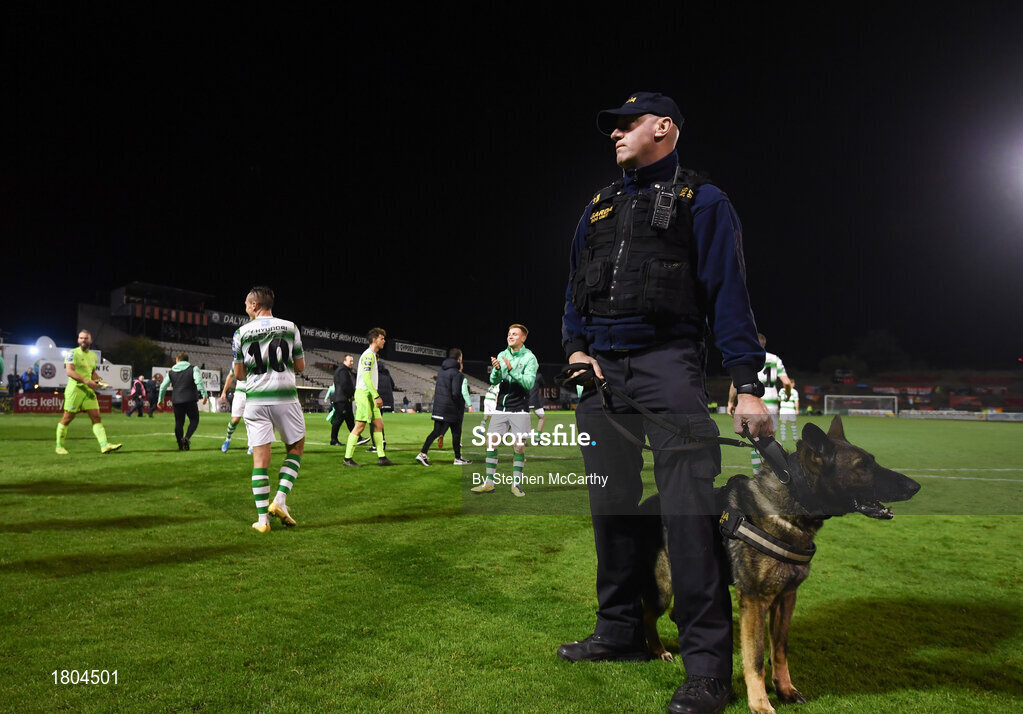 27 September 2019; A member of An Garda Síochána on the pitch following the Extra.ie FAI Cup Semi-Final match between Bohemians and Shamrock Rovers at Dalymount Park in Dublin. Photo by Stephen McCarthy/Sportsfile