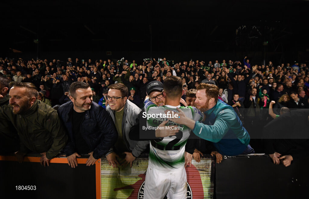 27 September 2019; Aaron Greene of Shamrock Rovers celebrates following the Extra.ie FAI Cup Semi-Final match between Bohemians and Shamrock Rovers at Dalymount Park in Dublin. Photo by Stephen McCarthy/Sportsfile