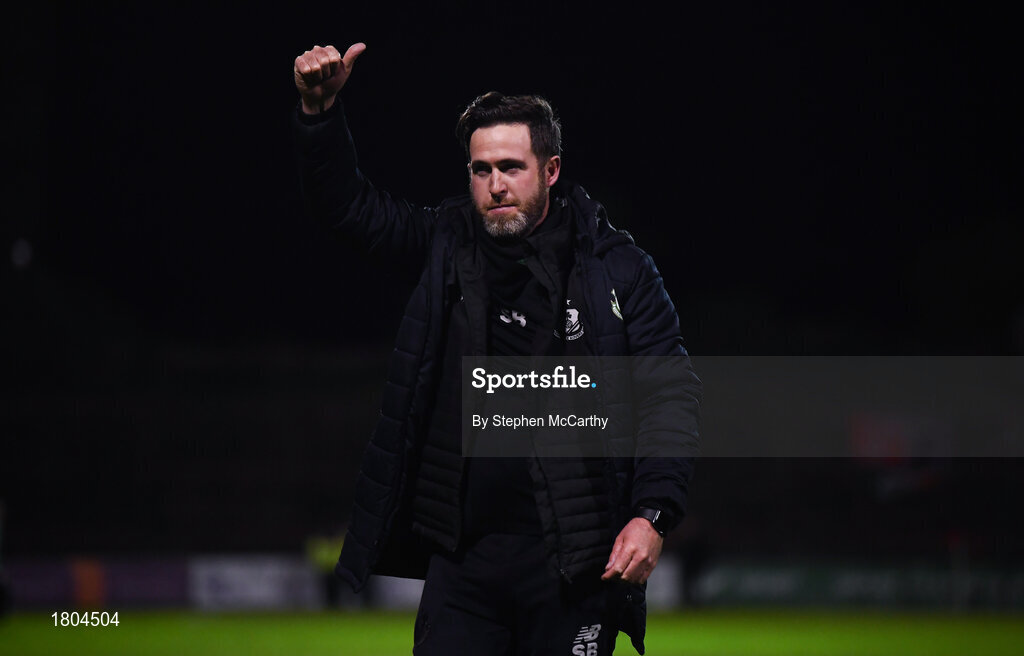 27 September 2019; Shamrock Rovers manager Stephen Bradley celebrates following the Extra.ie FAI Cup Semi-Final match between Bohemians and Shamrock Rovers at Dalymount Park in Dublin. Photo by Stephen McCarthy/Sportsfile