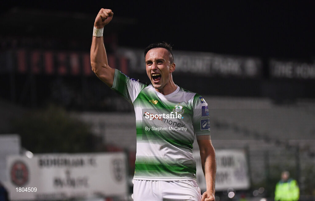 27 September 2019; Aaron McEneff of Shamrock Rovers celebrates following the Extra.ie FAI Cup Semi-Final match between Bohemians and Shamrock Rovers at Dalymount Park in Dublin. Photo by Stephen McCarthy/Sportsfile