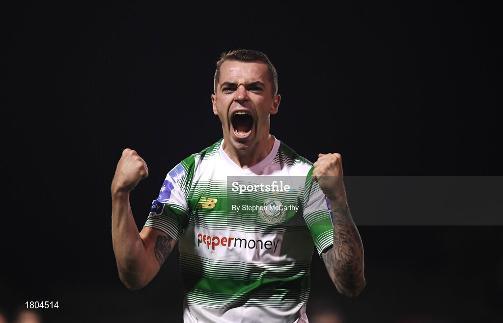 27 September 2019; Sean Kavanagh of Shamrock Rovers celebrates following during the Extra.ie FAI Cup Semi-Final match between Bohemians and Shamrock Rovers at Dalymount Park in Dublin. Photo by Stephen McCarthy/Sportsfile