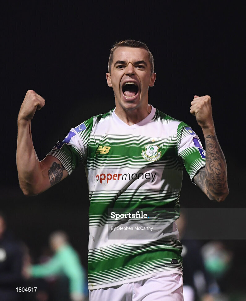 27 September 2019; Sean Kavanagh of Shamrock Rovers celebrates following during the Extra.ie FAI Cup Semi-Final match between Bohemians and Shamrock Rovers at Dalymount Park in Dublin. Photo by Stephen McCarthy/Sportsfile