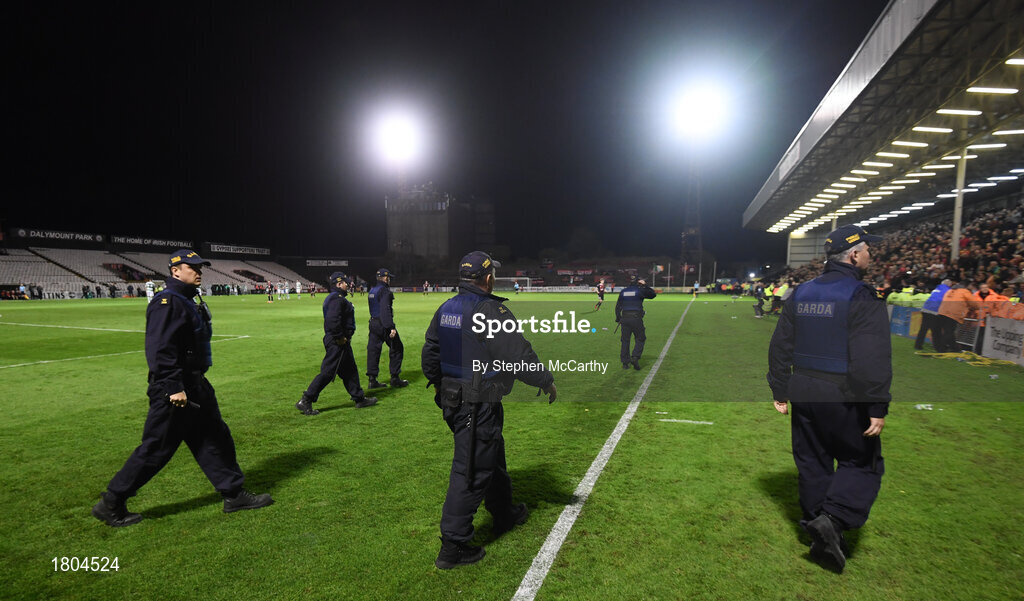 27 September 2019; Members of An Garda Síochána on the pitch during the Extra.ie FAI Cup Semi-Final match between Bohemians and Shamrock Rovers at Dalymount Park in Dublin. Photo by Stephen McCarthy/Sportsfile