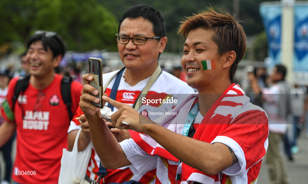 28 September 2019; Japan supporters prior to the 2019 Rugby World Cup Pool A match between Japan and Ireland at the Shizuoka Stadium Ecopa in Fukuroi, Shizuoka Prefecture, Japan. Photo by Brendan Moran/Sportsfile