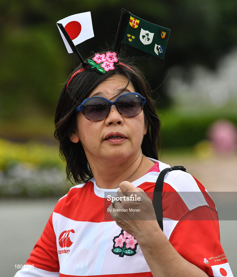 28 September 2019; A Japan supporter prior to the 2019 Rugby World Cup Pool A match between Japan and Ireland at the Shizuoka Stadium Ecopa in Fukuroi, Shizuoka Prefecture, Japan. Photo by Brendan Moran/Sportsfile