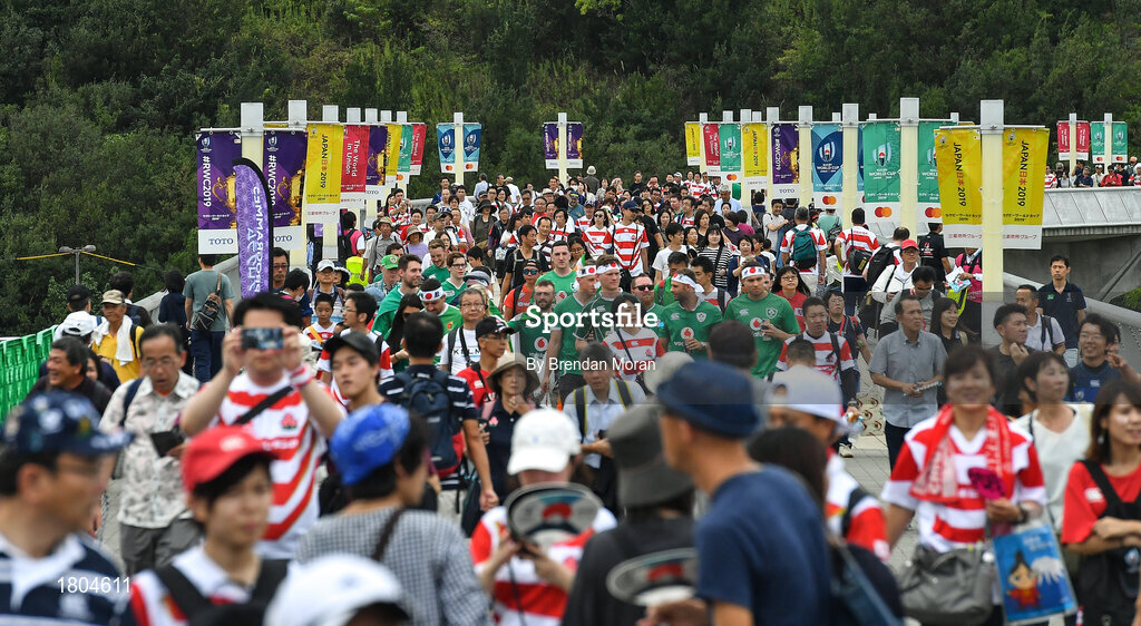 28 September 2019; Supporters arrive prior to the 2019 Rugby World Cup Pool A match between Japan and Ireland at the Shizuoka Stadium Ecopa in Fukuroi, Shizuoka Prefecture, Japan. Photo by Brendan Moran/Sportsfile