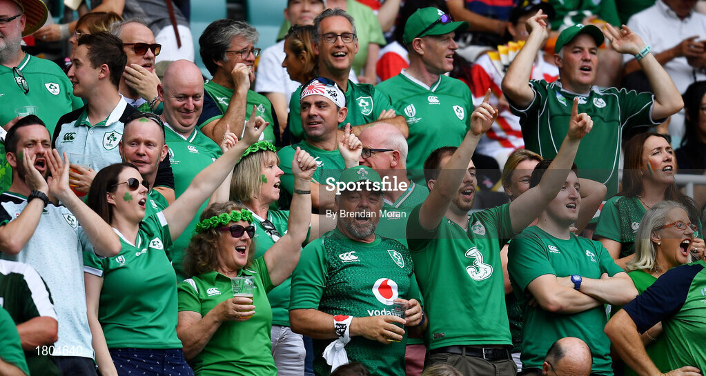28 September 2019; Ireland supporters prior to the 2019 Rugby World Cup Pool A match between Japan and Ireland at the Shizuoka Stadium Ecopa in Fukuroi, Shizuoka Prefecture, Japan. Photo by Brendan Moran/Sportsfile