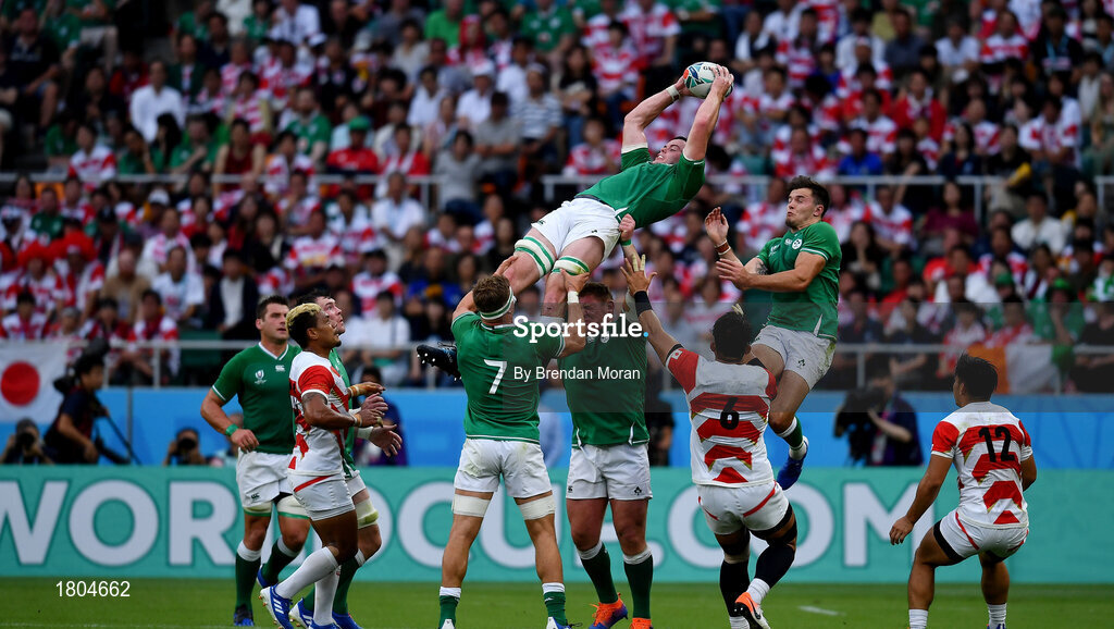 28 September 2019; James Ryan of Ireland claims a restart during the 2019 Rugby World Cup Pool A match between Japan and Ireland at the Shizuoka Stadium Ecopa in Fukuroi, Shizuoka Prefecture, Japan. Photo by Brendan Moran/Sportsfile